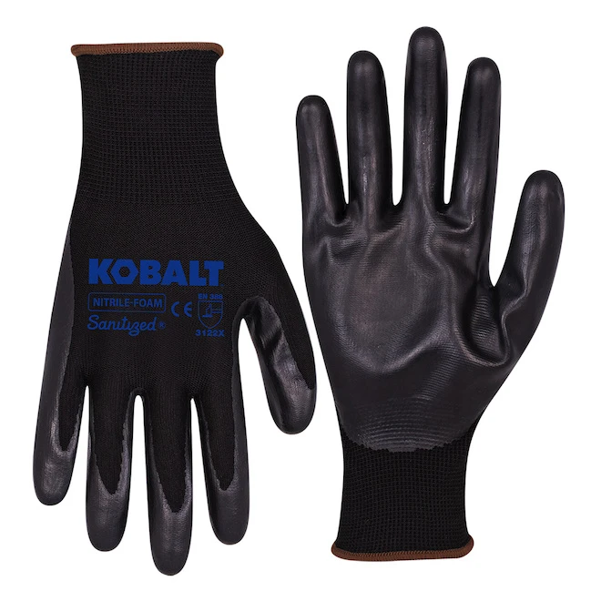 Gants multifonctions Kobalt avec coquille en polyester de jauge 13, paume et bout des doigts recouverts de mousse de nitrile. Poignets en tricot pour empêcher la saleté et les débris d’entrer Traitement assainiCoque en polyester – jauge 13Paume et bouts des doigts recouverts de mousse nitrilePoignet en tricot élastique